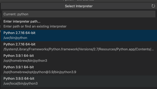 인터프리터를 설치한 버전에 맞게 선택해주자.
