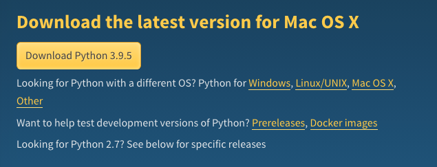 터미널에서 $python -v 명령어로 파이썬이 이미 설치되어 있지만,