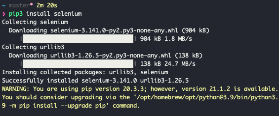 파이썬이 설치되었으면 Selenium을 설치해준다.
