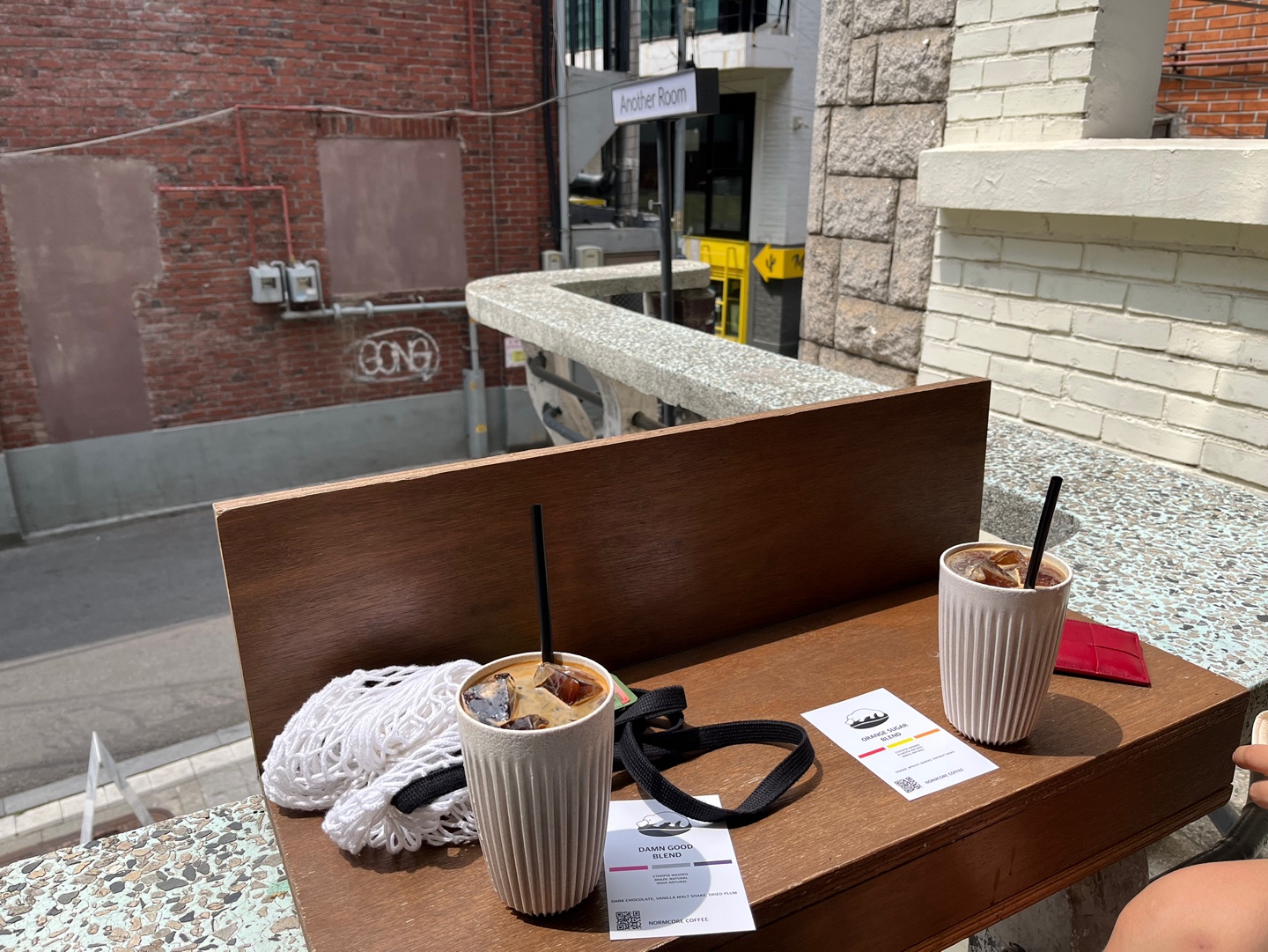 거의 반 야외라고 할 수 있을 정도로 테라스가 반인 카페인데, 일요일 아침 열한시이다 보니 주인언니도 테라스에 앉아계시다가 우릴 보고 깜짝 놀라신 눈치셨다.