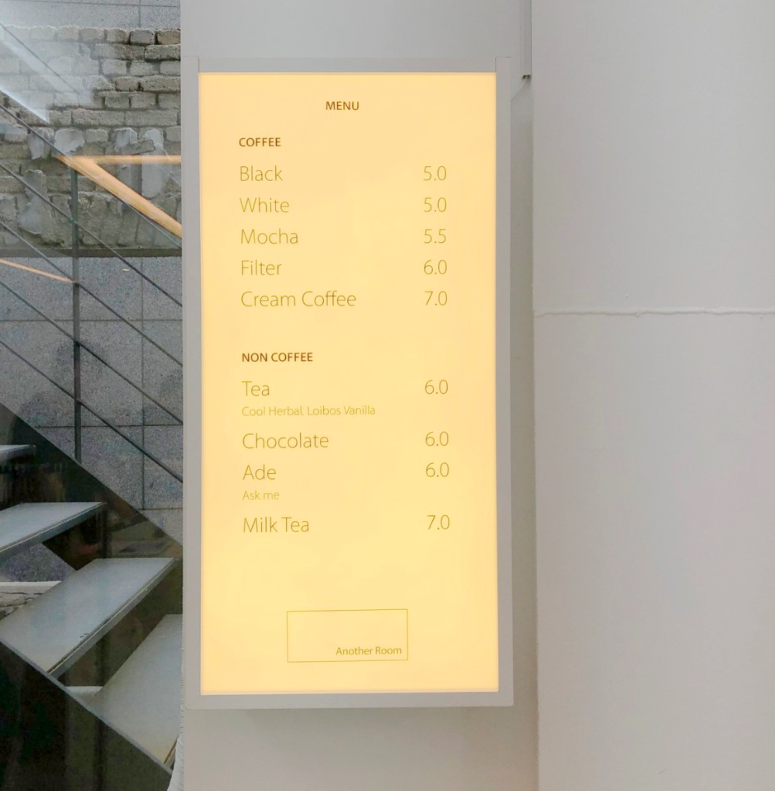 어나더룸의 특징이라면 스페셜티 커피라는 것 그리고 블랙은 아메리카노 화이트는 라떼류