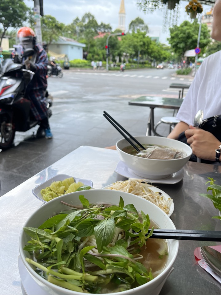 이른 새벽 비행기였고 아침도 못먹고 굶주린 상태라 공항에서 그랩으로 택시를 잡아 쌀국수 집으로 향했습니다.