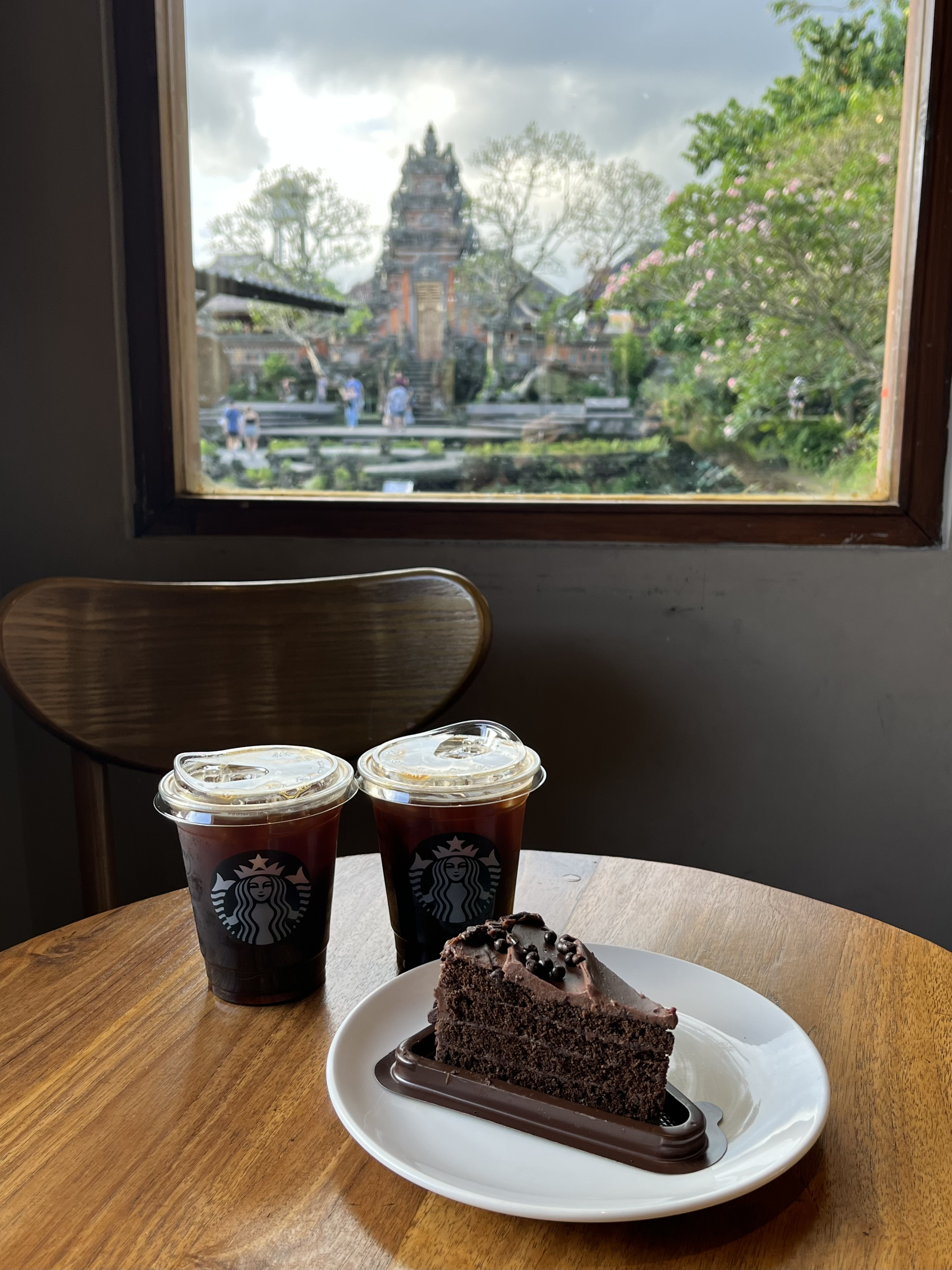 가장 아름다운 스타벅스로 뽑히는 우붓 스타벅스는 사라스와띠 사원을 배경으로 위치해있습니다.