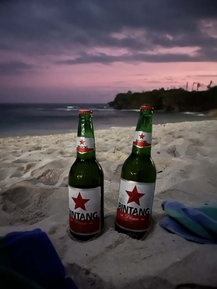 드림비치에 돌아와서 비치타월을 깔고 누워서 별도 보고, 맥주도 마시고