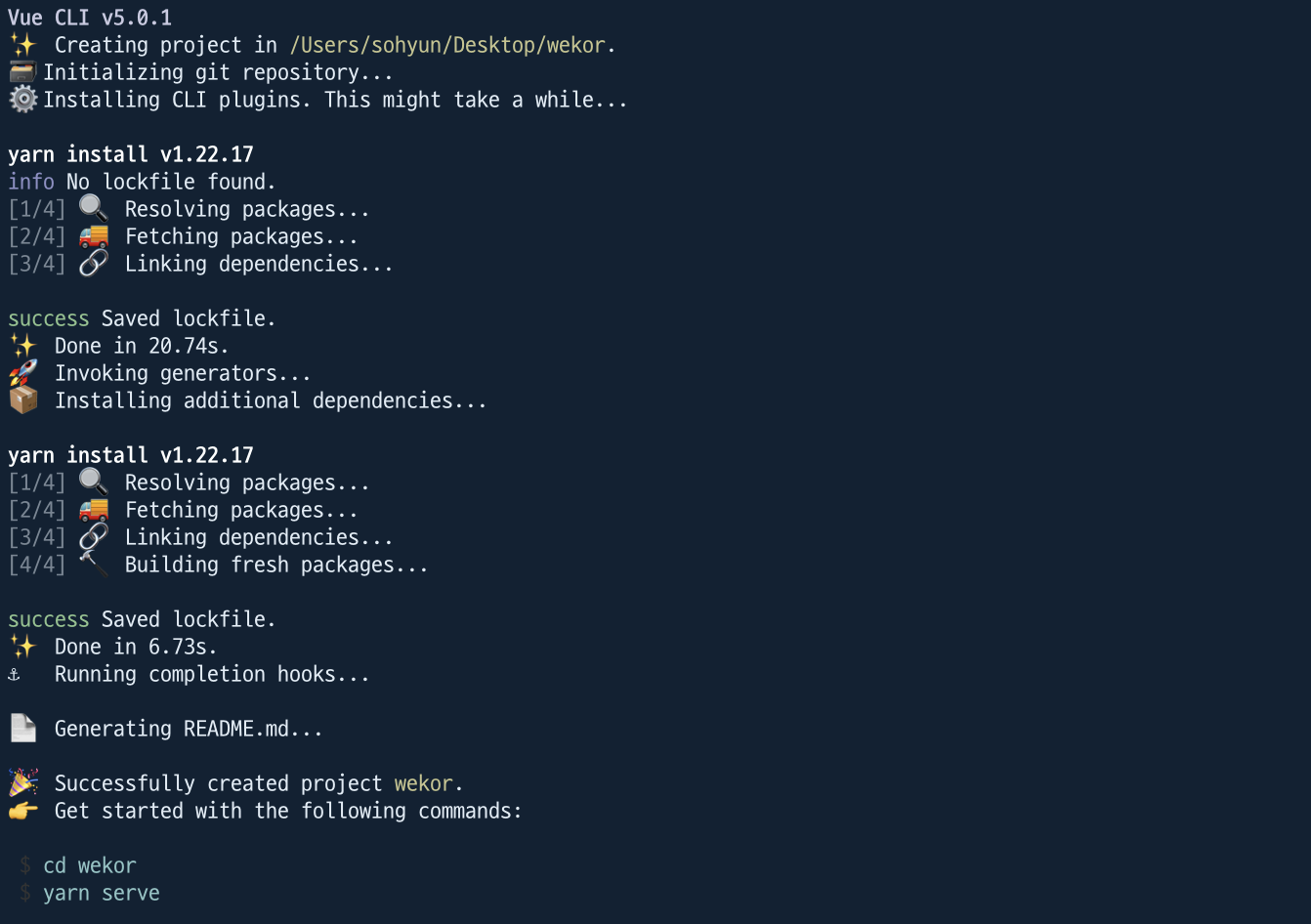 이제 거의 다왔습니다. 아래와 같은 메세지가 나오며 인스톨 완료! 이제 해당 프로젝트로 이동해서 로컬 호스트를 띄워보면 됩니다.👏🏻