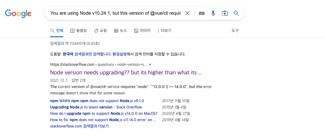 아차, Vue 3 설치하기에 앞서 현재 제 개발환경에 문제가 하나 있었어요.