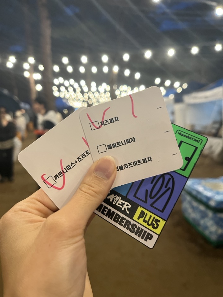 이렇게 티켓부스에서 구입한 티켓을 가지고 각 푸드마켓에 가서 음식으로 교환해옵니다.