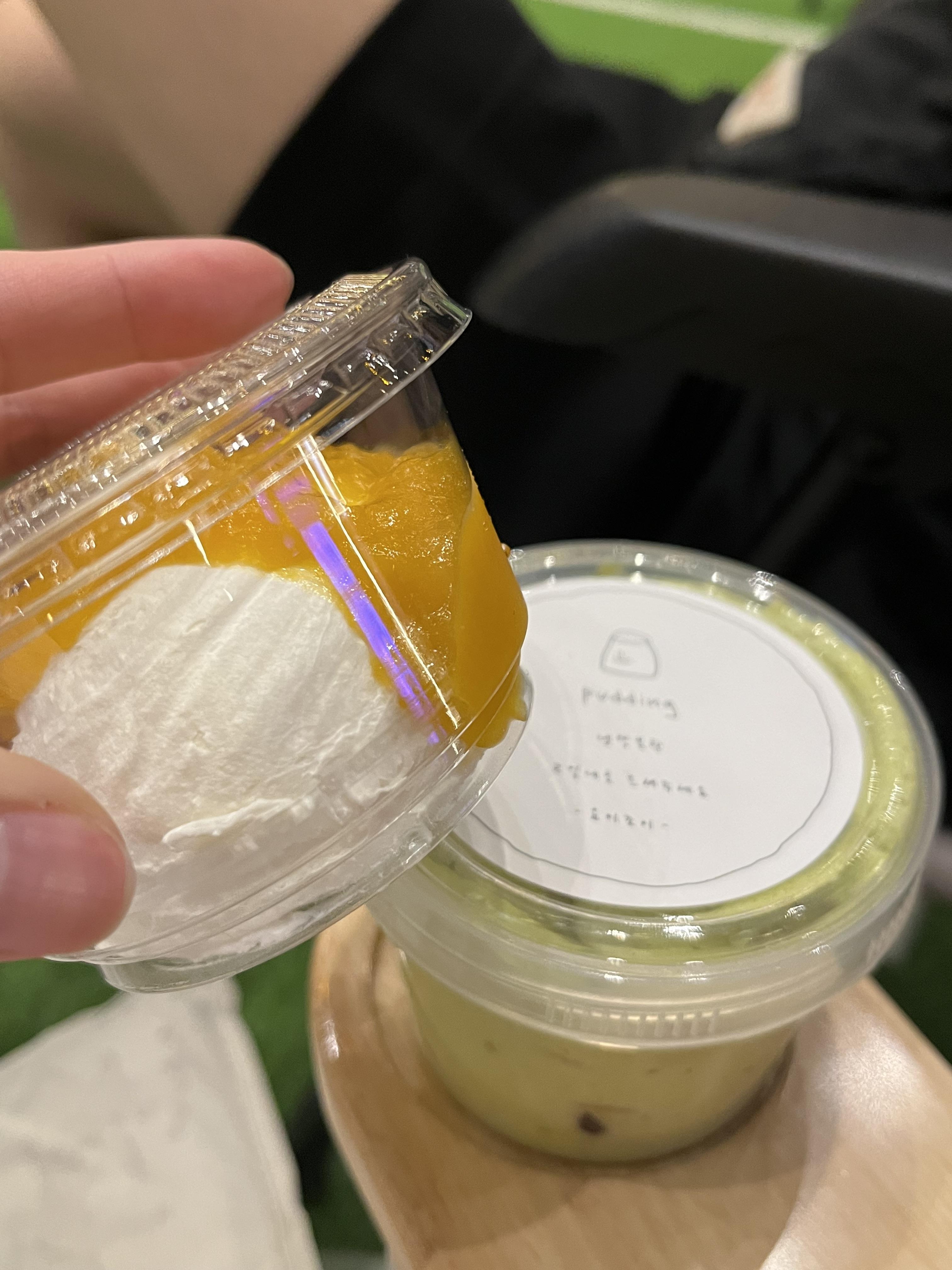 쑥인절미푸딩과 사랑에빠진딸기푸딩이 궁금했지만 나눠먹을려고 피스타치오 푸딩을 샀어요.