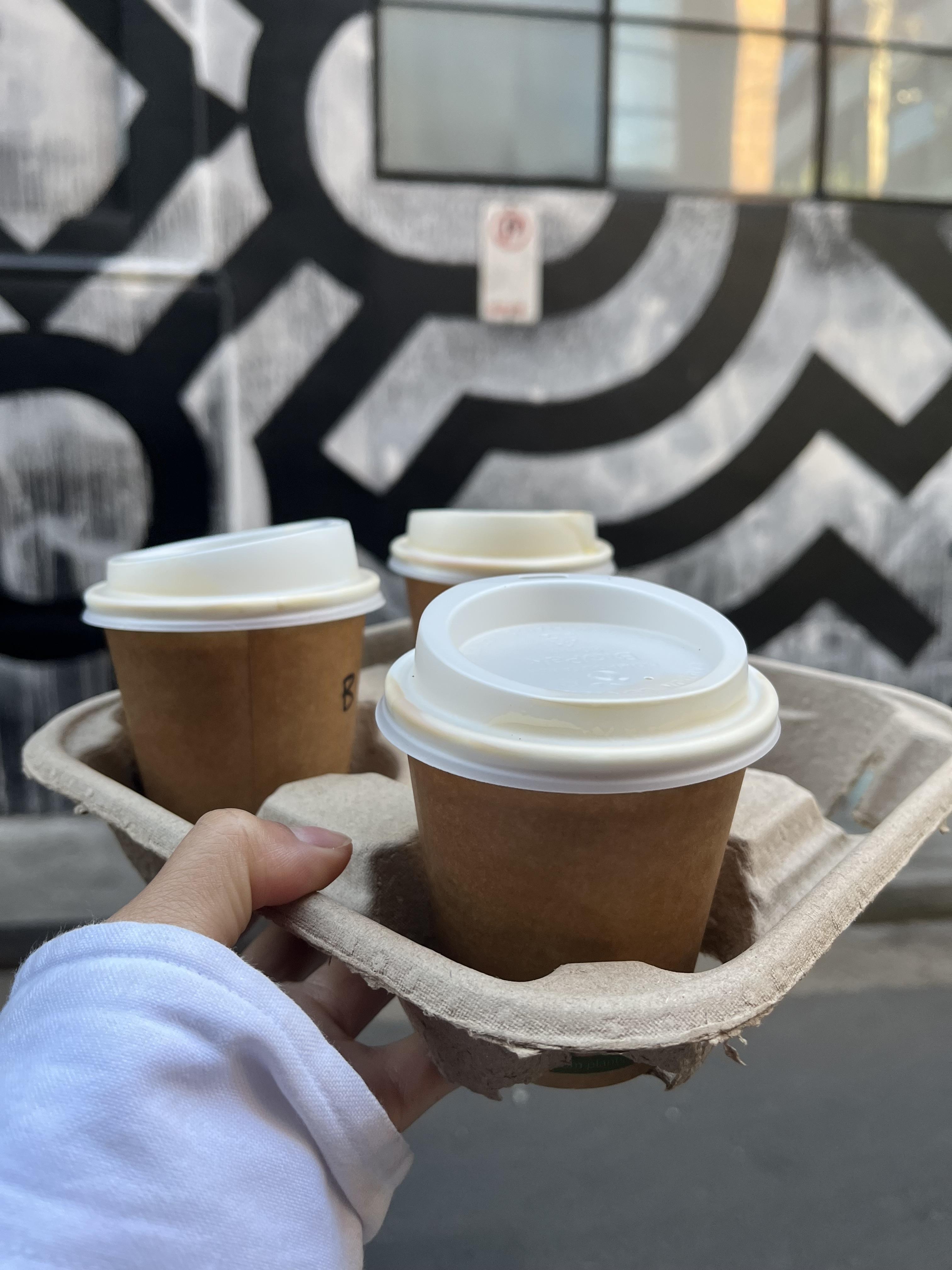 친구들을 위한 Single O Surry Hills에서 롱블랙을 테이크아웃해서 Vibe Hotel로 가줍니다.