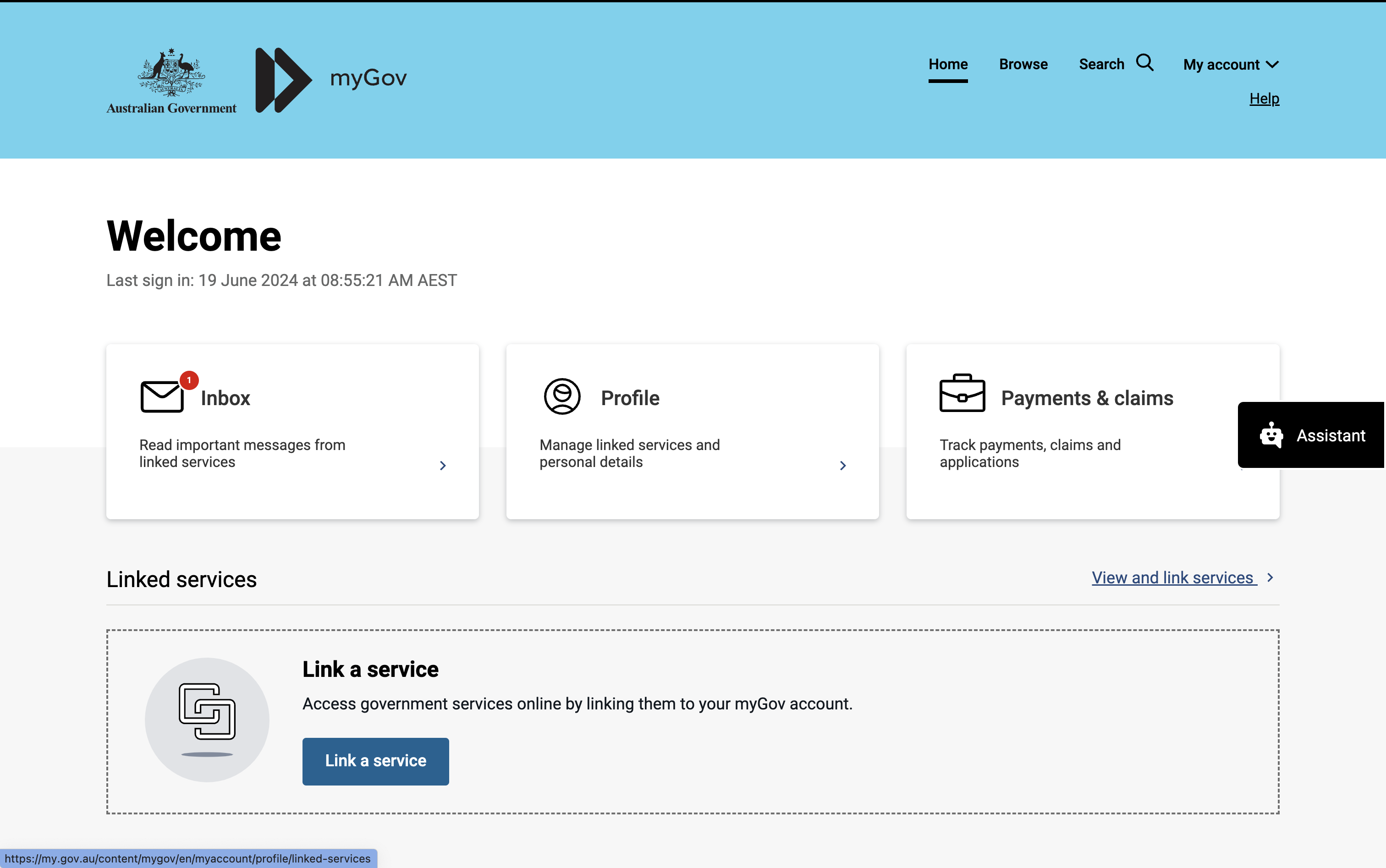 바로 MyGov에 로그인하고, Australian Taxation Office에 계정을 연동을 해야 세금 환급신고를 할 수 있습니다.