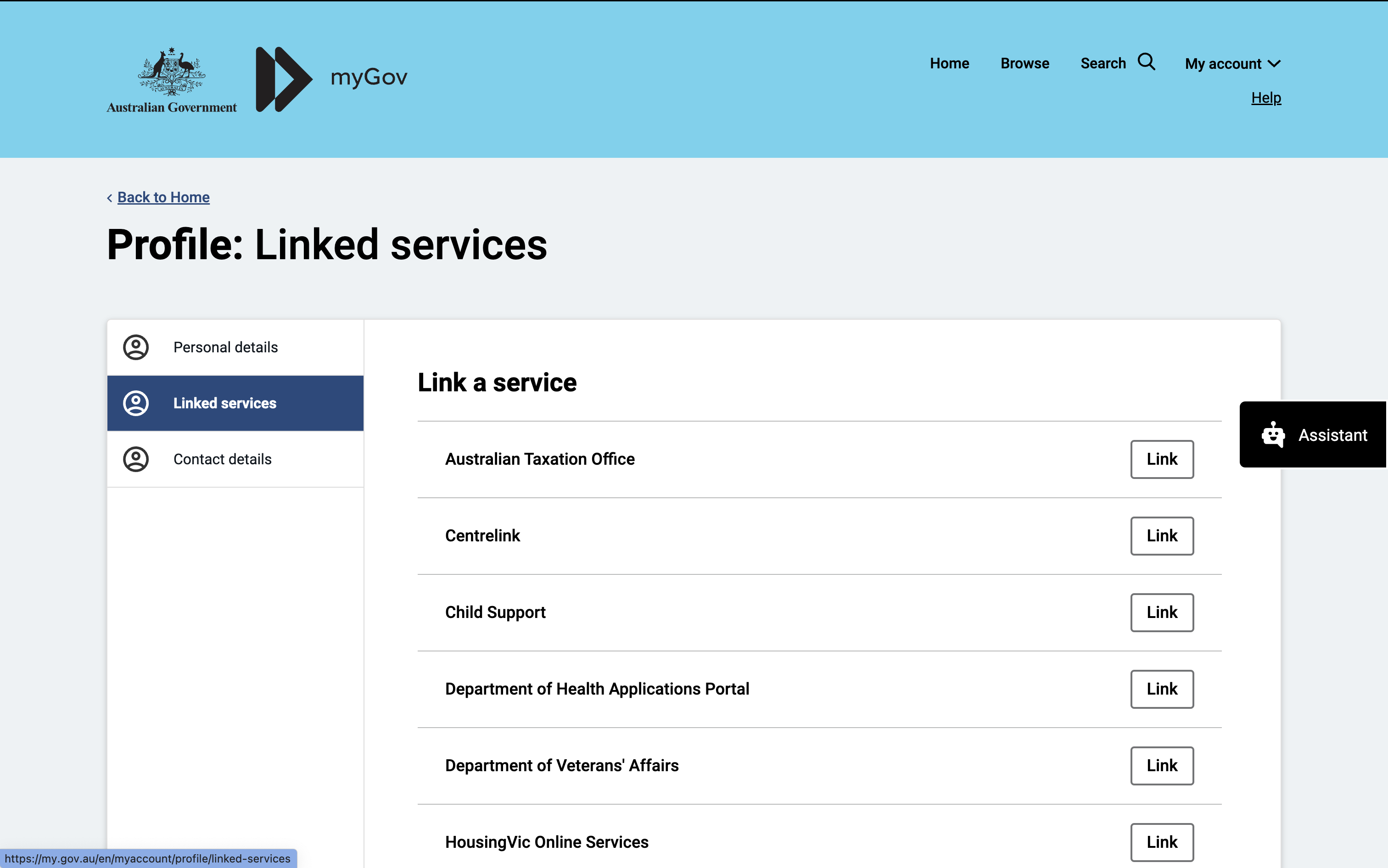 4. 로그인 성공! Link a service 를 클릭 후 기타 정부 서비스(ATO) 연결을 합니다.