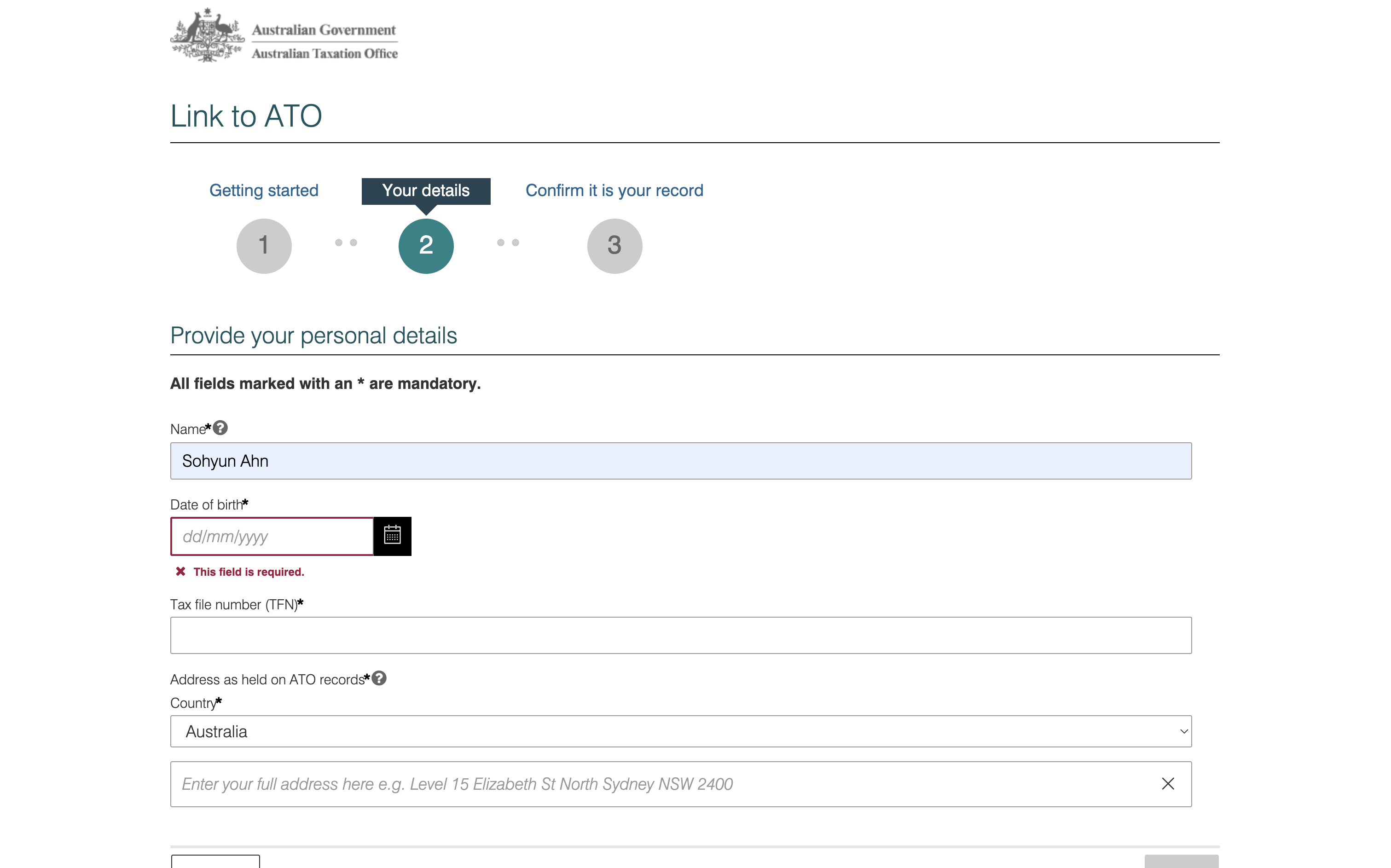 7. Your details에 이름과 생년월일, TFN 정보 등등 입력합니다.