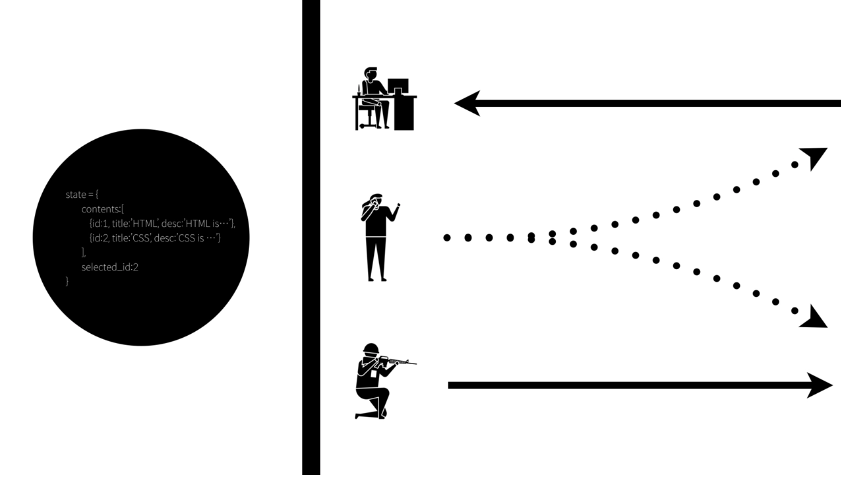 - 사실 실제 정보는 state에 저장되어 있고, 이 state에 우리는 직접 접근이 불가능하다.