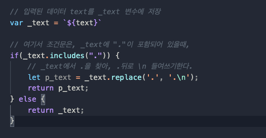 문자열을 나눌 때, 이등분이 아닌 특정 문자를 찾아 들여쓰기 할 수 있다.