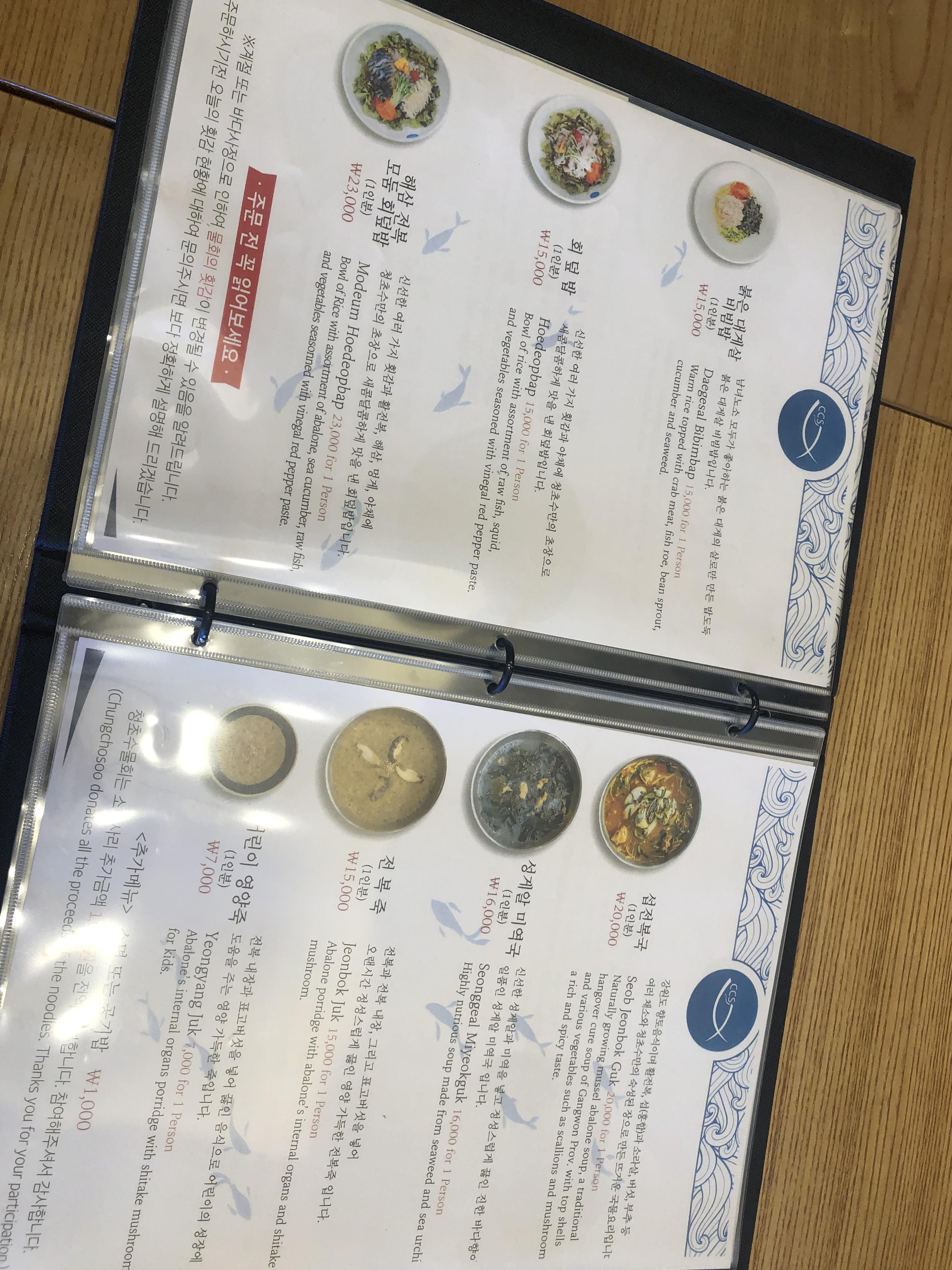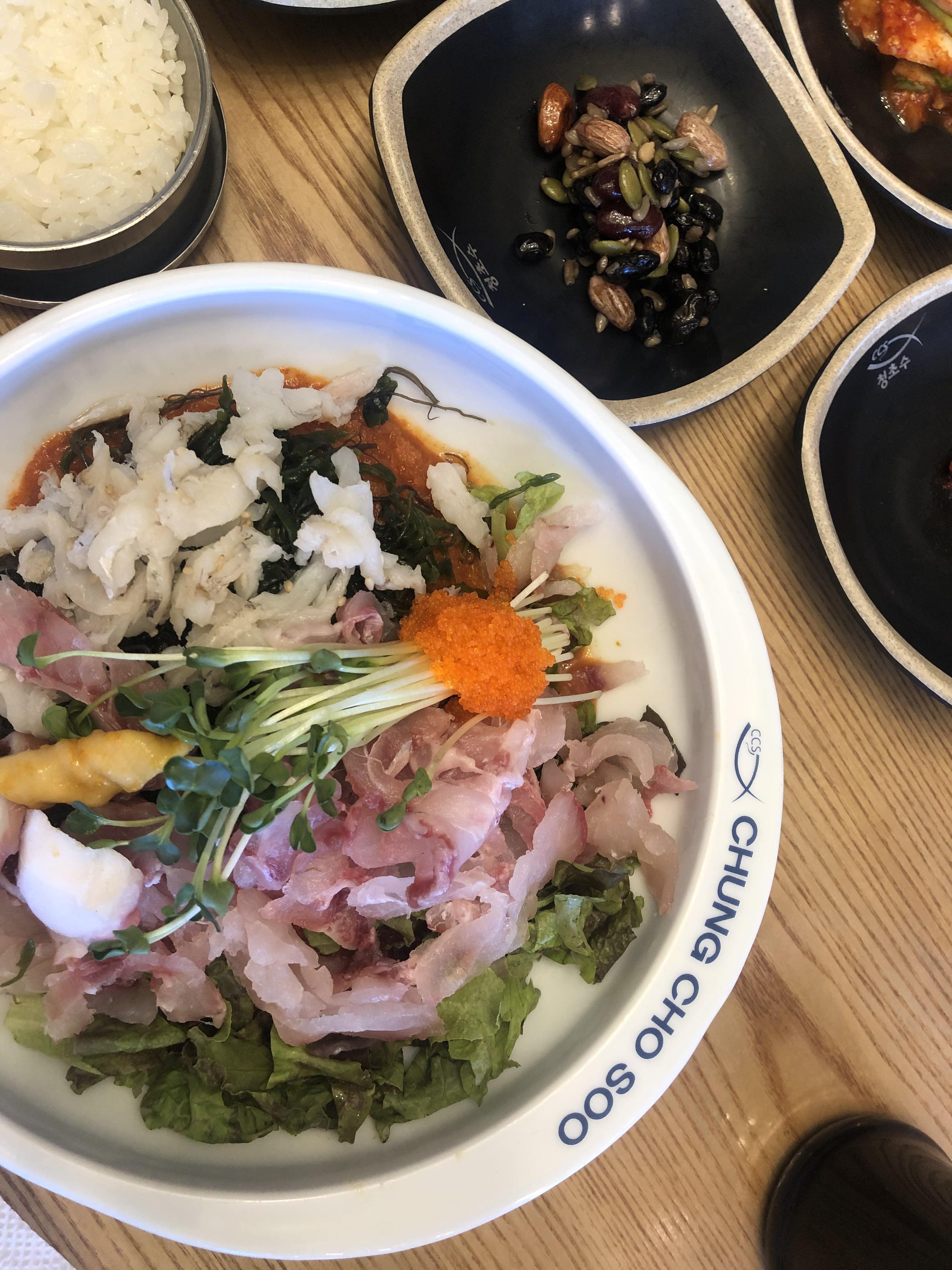아빠만 성게알 비빔밥을 시키고 나머지 가족들은 물회로 통일