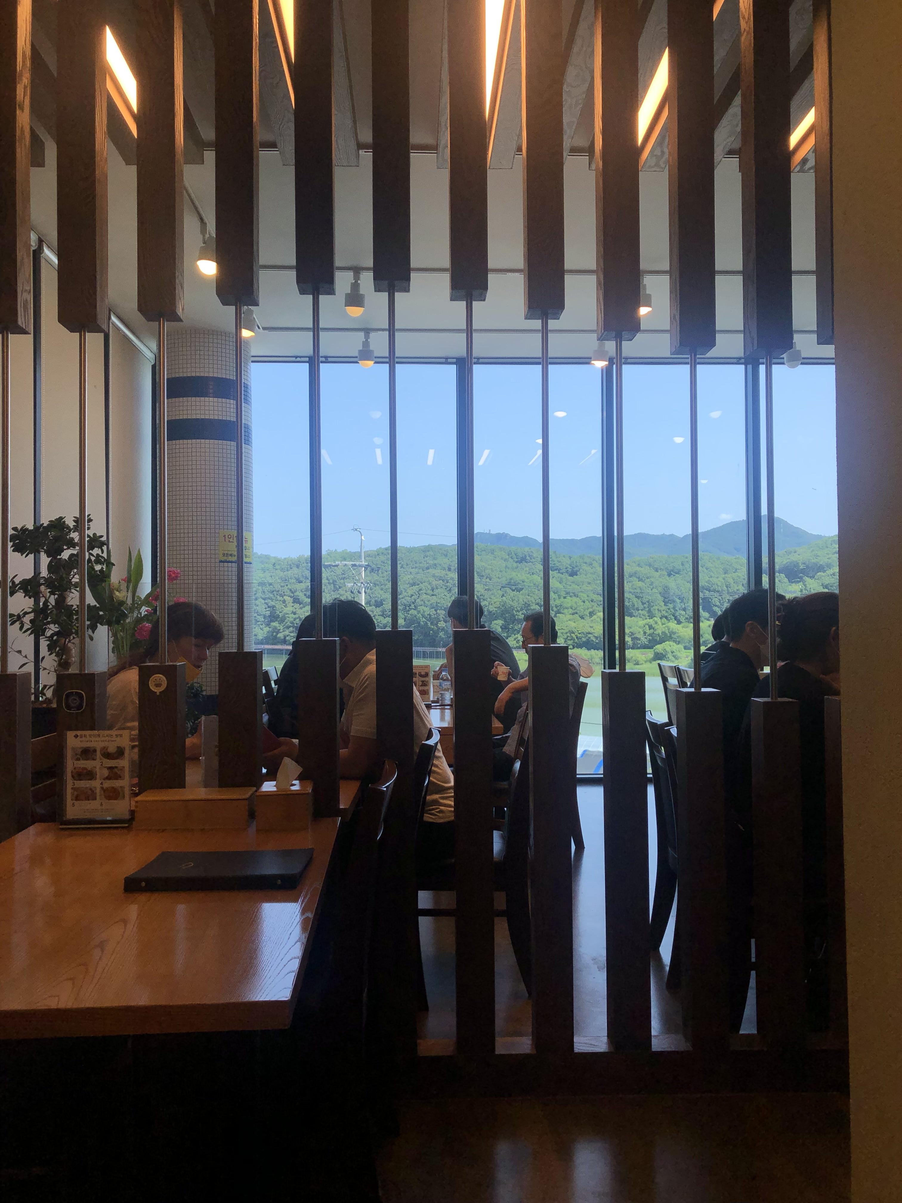 창가자리 못앉아서 아숩. 하지만 산과 나무, 호수가 보이면서 프라이빗한 느낌도 나서 엄마아빠는 오히려 좋았다공