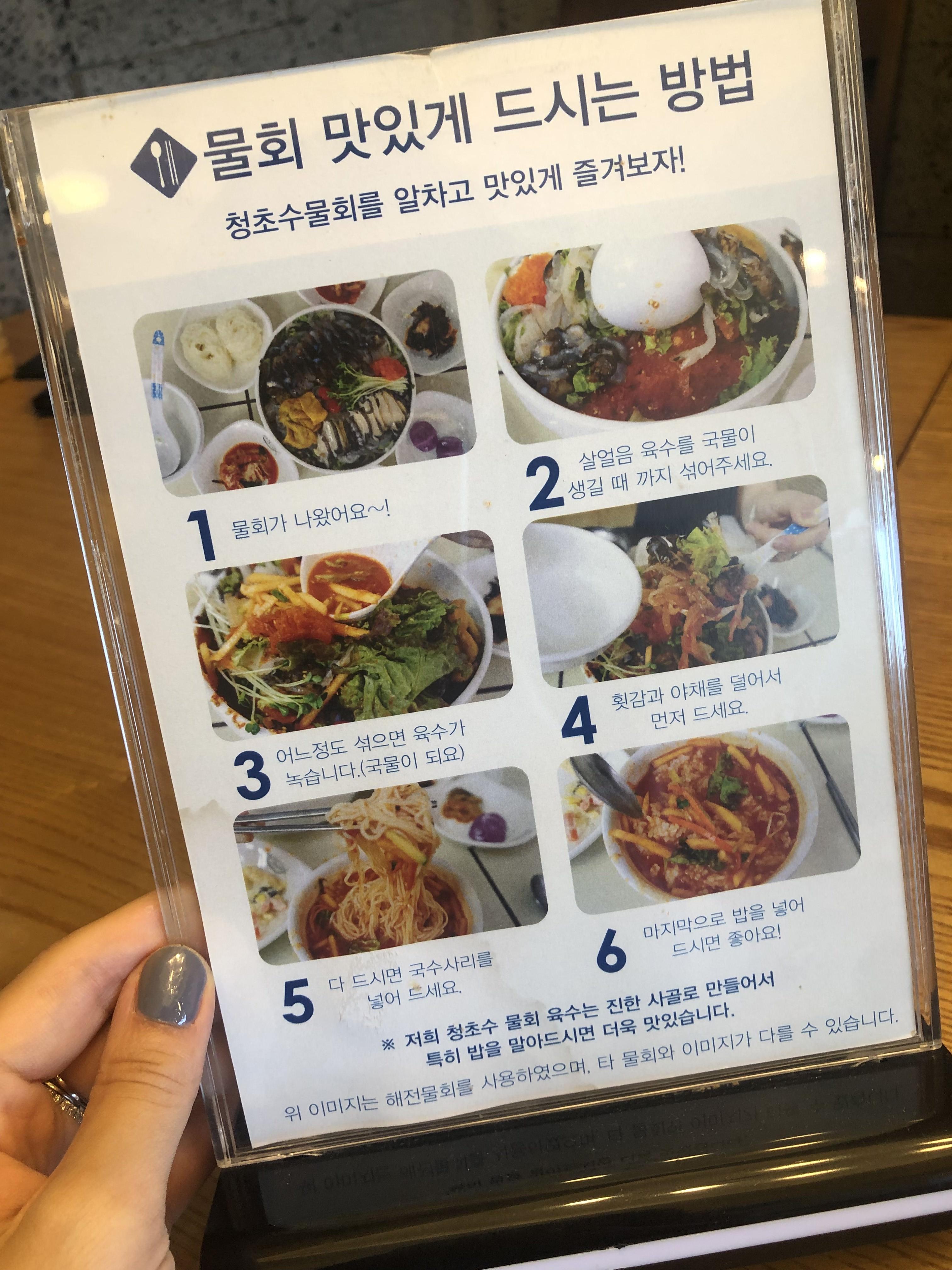 청초수물회는 대한민국 최초 물회 전문점이라고 합니다.