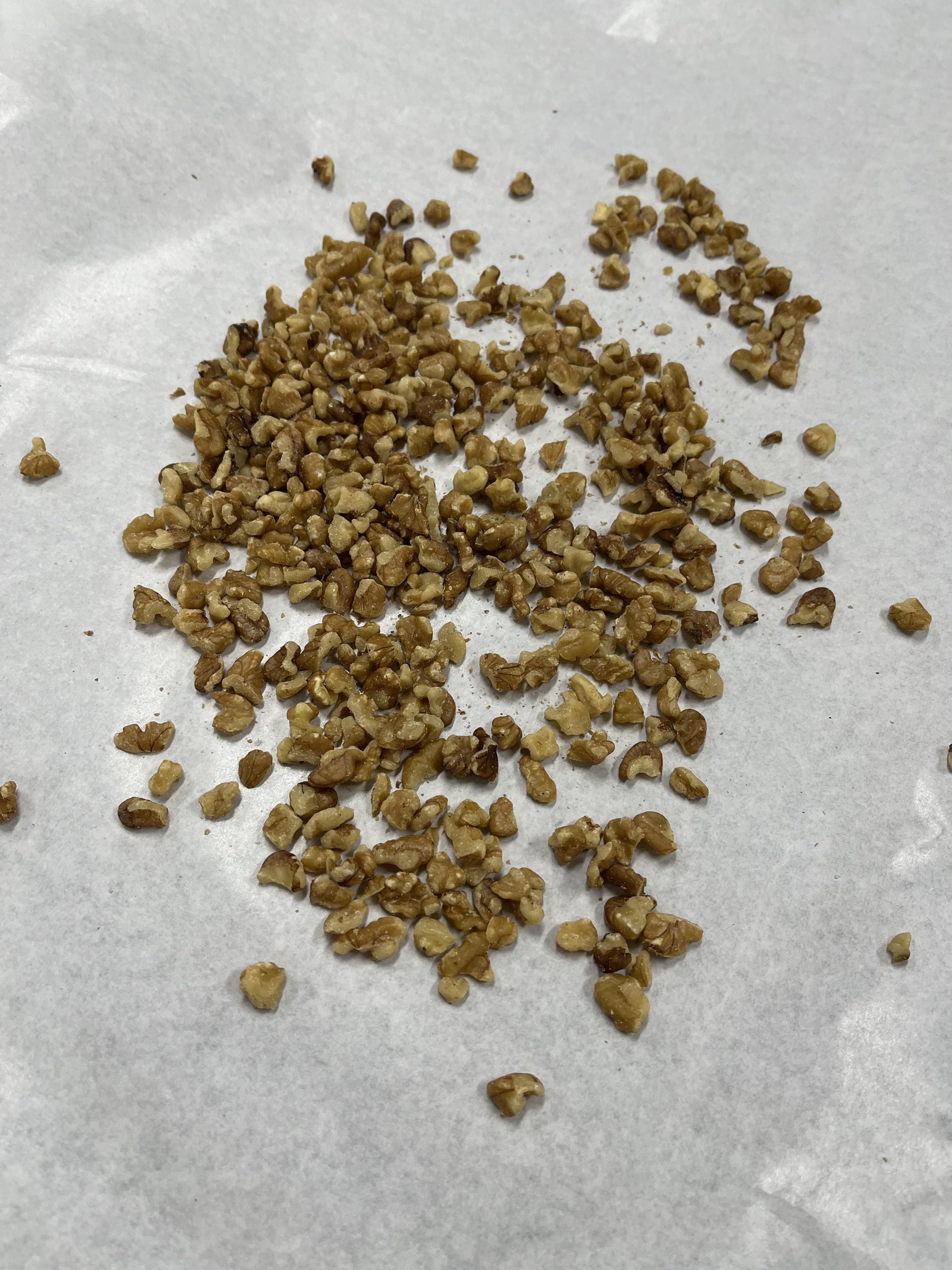 그리고 컵케이크를 만들어주는 데, 호두는 그냥 섞으면 약간의 호두 비릿내가 나기 때문에, 오븐에서 살짝 로스팅을 해준 뒤, 블루베리 머핀에 들어가게 됩니다.