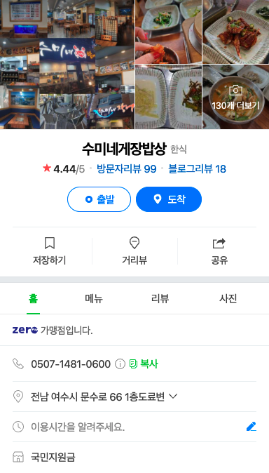 버미는 창원에서 운전해서 와 바로 점심을 먹으러 가기로 했기 때문에 여수에 유명한 간장게장 맛집을 찾았더니,