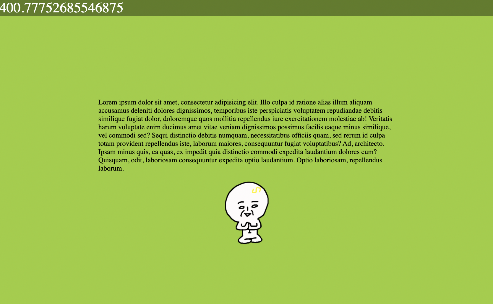 아래 예제 그림에서 왼쪽 상단에 보이는 .output의 반투명 박스는 포지션이 고정이며 스크롤의 값을 보여준다. 스크롤이 아래로 내려갔을 때 일분이가 커지는 것을 알 수 있다.