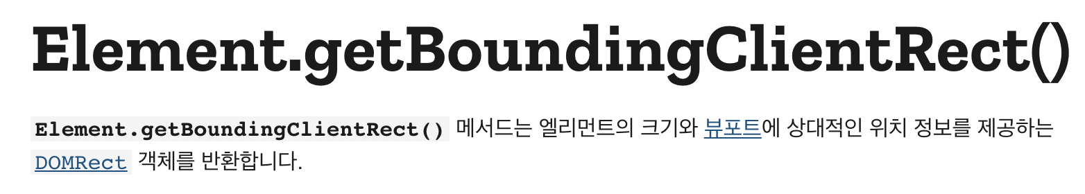 이 중 우리는 스크롤 이벤트를 주었을 때 일분이로부터 세로축(Y의 값)을 가져오고 싶기 때문에, getBoundingClientRect().top을 찍어주면 400.77..을 값을 알 수 있다.