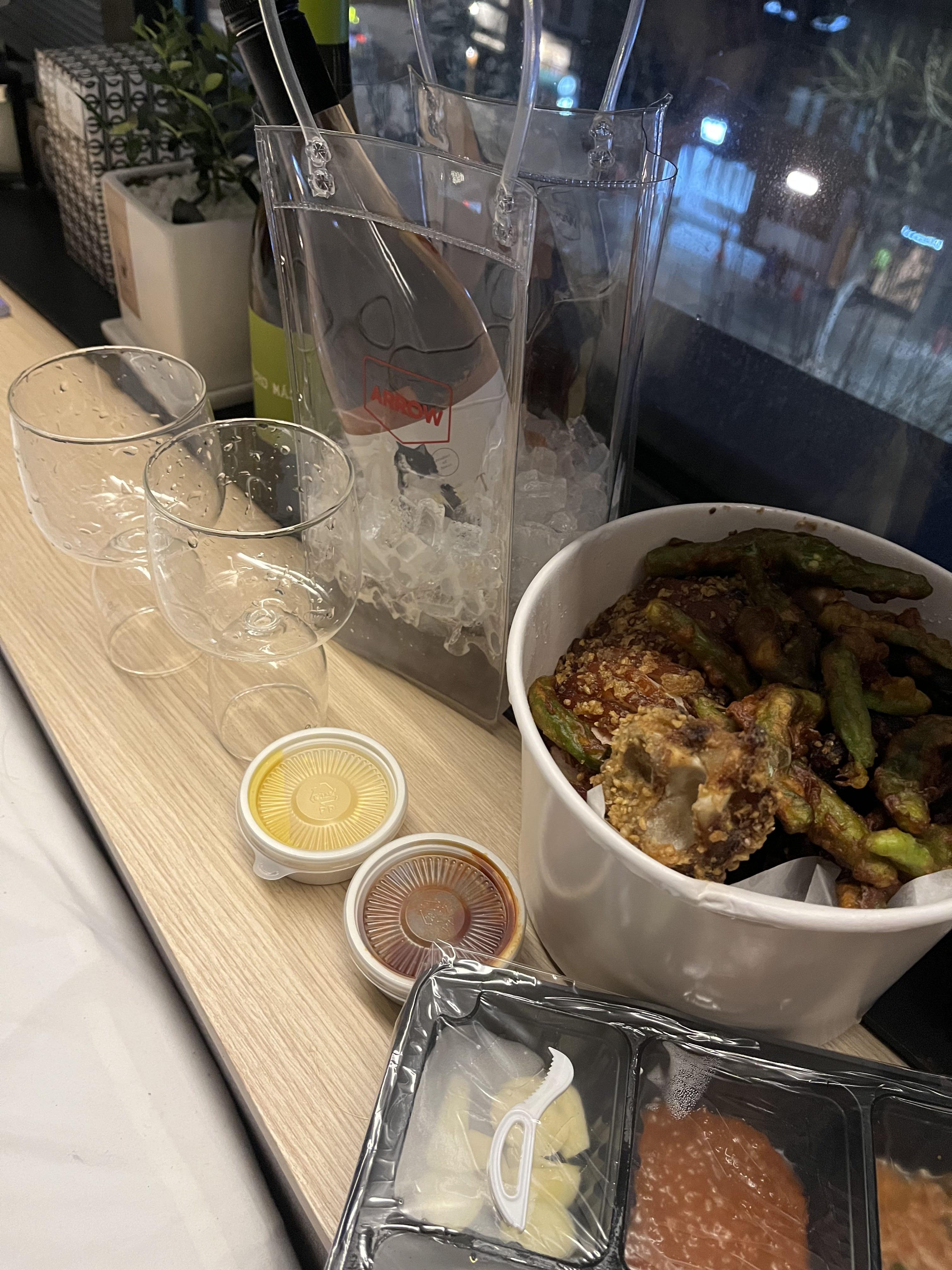 이가탕수6은 혼자 탕수육하기 좋은 테이크아웃 식당으로 내부에서 두세사람이 취식할 공간은 있으나 보통은 테이크아웃해서 집에서 맥주랑 한잔하기 너무 좋은 맛. 크- '소'자를 시키면 부먹으로 밖에 옵션이 없기 때문에 '중'을 시켜서 매콤소스에 콕 찍어 먹는다.