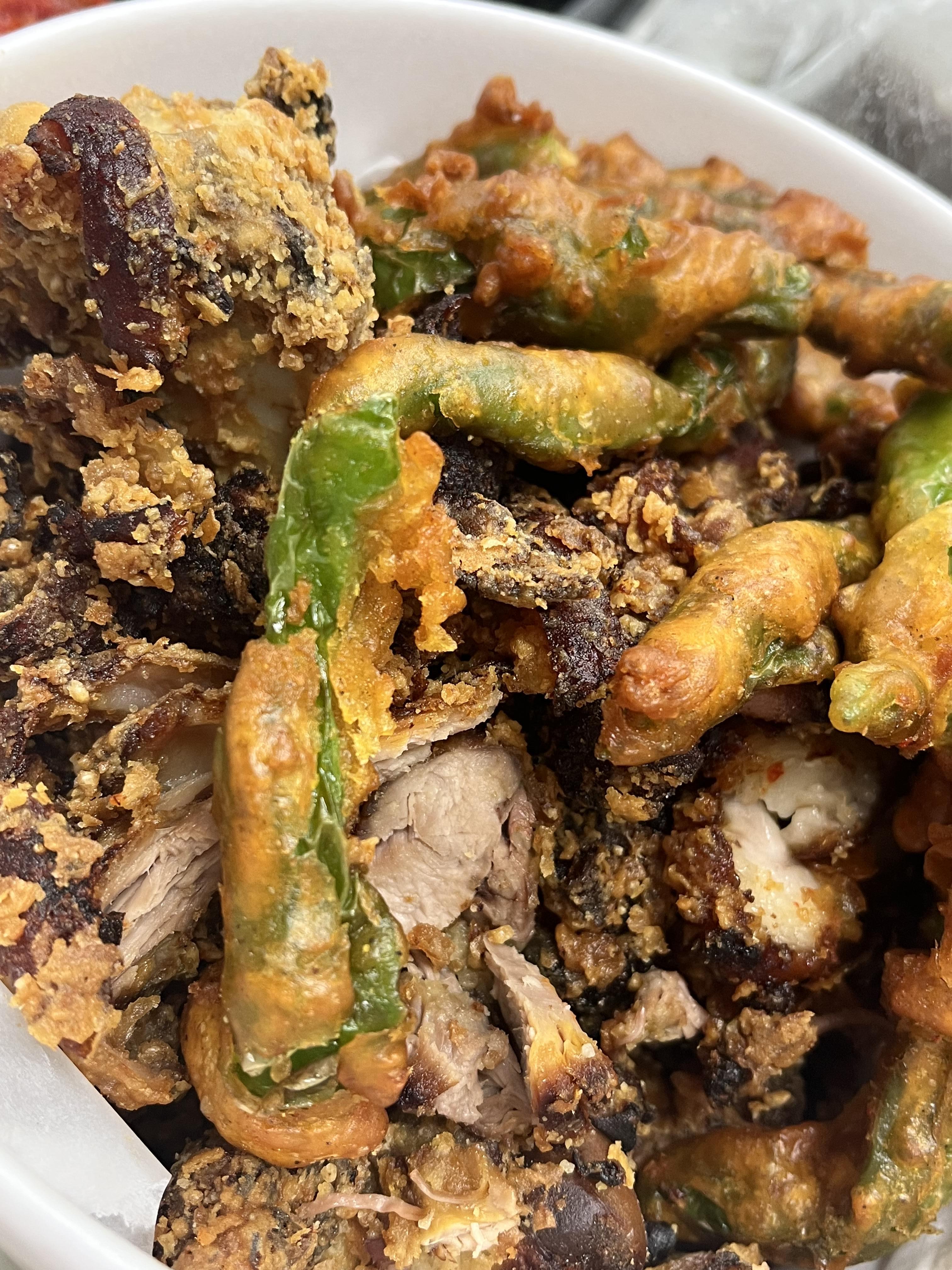 문래동 맛집 그믐족발이 연남에도 있다. 족발도 맛있는데 튀김족발이면 말을 모해'◡'✿ 하지만 여기서 진또배기는 왕큰 꽈리고추 튀김이라는거. 고추튀김은 꼭 추가해서 먹도록 하자. 꽈리튀김족발 36.0이면 두사람한테는 조금 많은 양이고 여자 셋이 딱 나눠먹기 좋은 양이다. 문래동은 보통 오픈부터 사람이 많다는데 연남에서는 그냥 배달시켜버렸다.