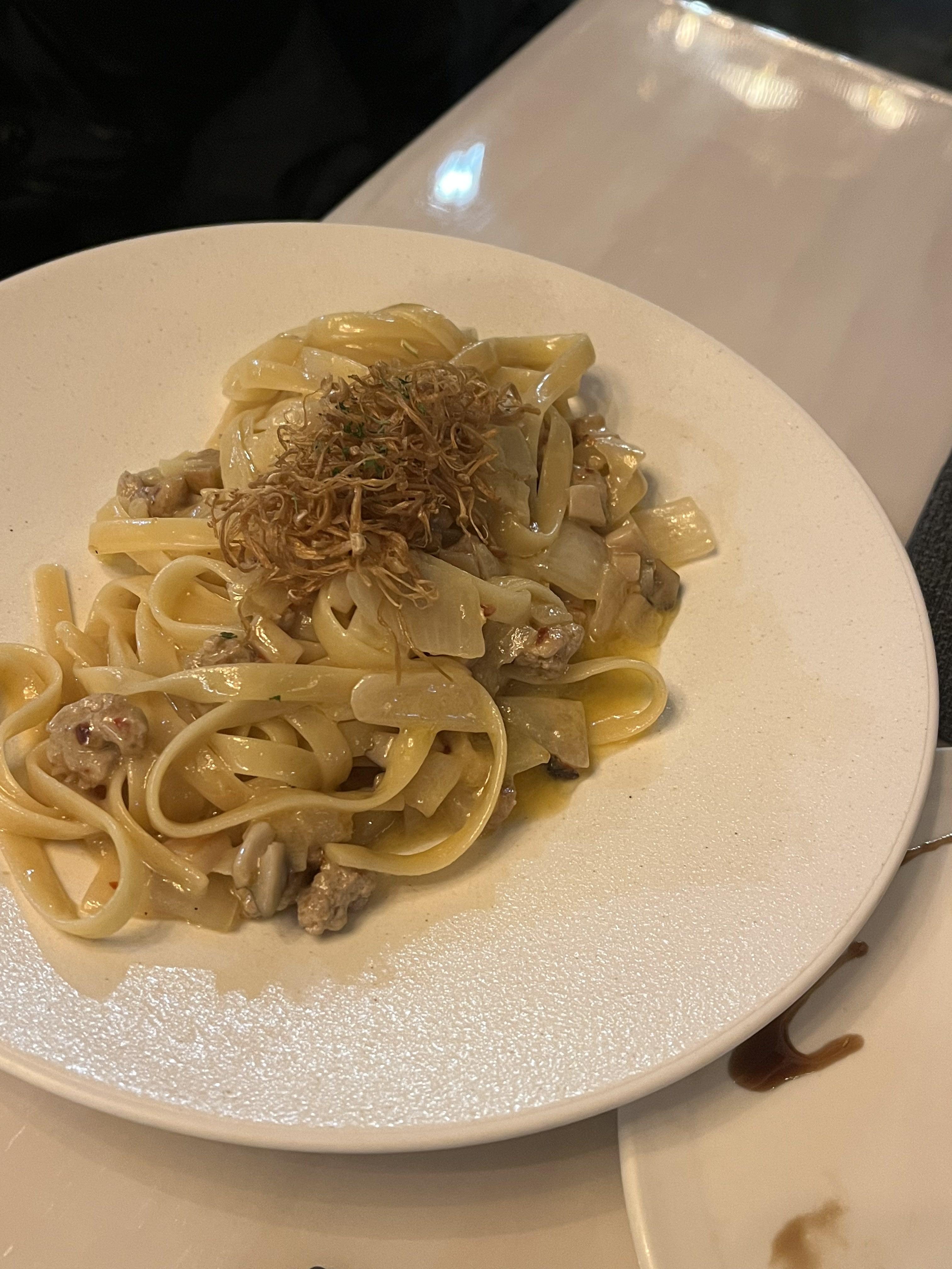사실 양식을 그다지 선호하는 편은 아니라(가 아니라 집에서 해먹는 파스타를 좋아한다.) 많이 가보진 않았지만 특이한 메뉴가 있어서 고른 포레스트. 들깨 크림파스타가 고소하면서 적당한 꾸덕함이 너무 맛있어서 크림만 싹싹 긁어먹고 싶었다. 얇은 씬 크러스트 샐러드 피자도 맛보고 싶었지만 친구랑 얼른 먹고 헤어지는 날이었기 때문에 파스타로도 대체로 만족스러웠고, 식전 빵도 아주 쫄깃쫄깃해.