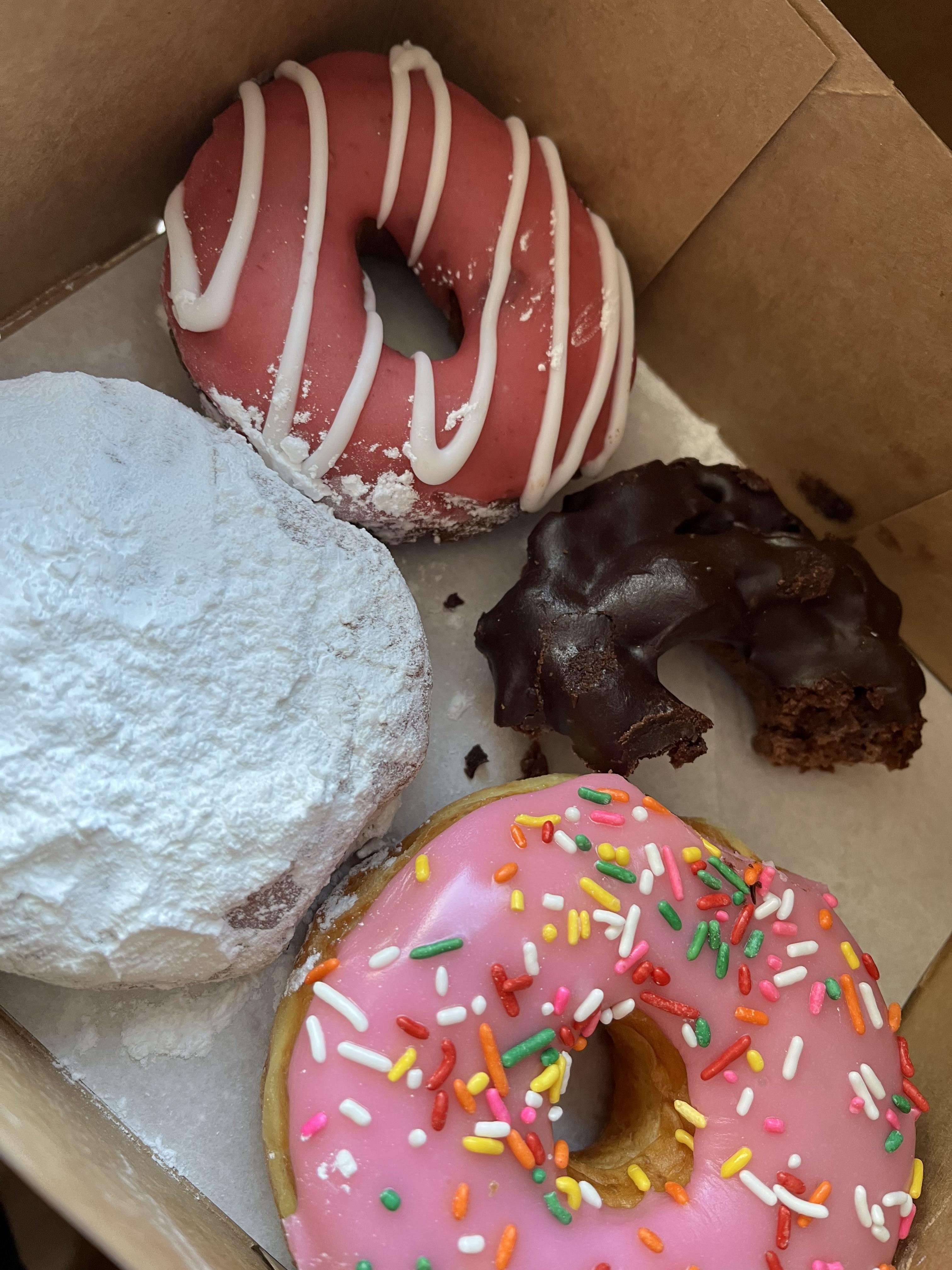 한동안 뉴욕에서 사워도우 도넛에 또 미쳐있었던 적이 있더랬지. 랜디스의 시그니쳐 아이언맨 도넛 "핑크 스프링클 도넛"은 유니버셜 스튜디오에서 파는 촉촉달달한 심슨 도넛맛 그대로였고, 저 먹다가 급하기 찍은 초콜렛 올드패션이 진짜 찐또배기 JMT. 입자가 촘촘해서 수분을 가득 머금은 도넛을 좋아한다면 한국에서 몇 없는 정말 맛난 도넛을 먹을 수 있다. 랜디스의 가장 큰 흠은 긴 웨이팅아닐까. 이 날은 다행히 춘천 여행후 돌아온 평일 오후여서 웨이팅이 하나없이 한가롭게 도넛을 골라올 수 있어서 럭키했던 날.