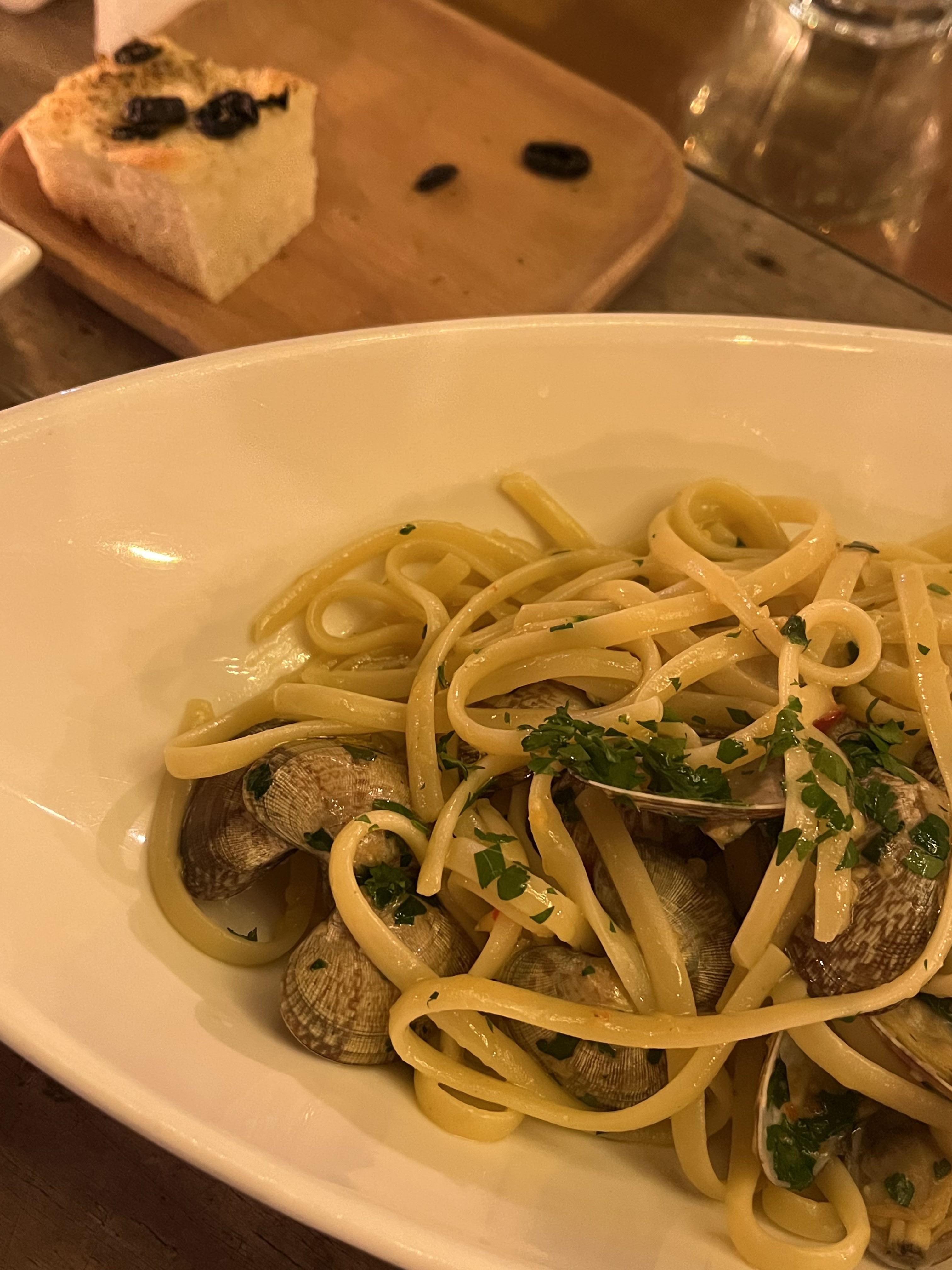 은은한 호박빛 조명이 반겨주는 알척 오스테리아는 사실 친구가 배가 너무x2 고파 쓰러질것 같다며 뭐라도 먹자 하고 우연히 조용한 연남거리에 흘러 들어가서 시킨 봉골레와 아란치니. 스태프들도 외국인분들이셨는데, 알고나니 이곳도 이탈리아 베네치아 출신의 쉐프님. 토마토와 올리브를 넣어 구운 식전빵에 올리브유에 콕 찍어먹기. 촉촉한 식감이 황홀하다. 이탈리아식 라이스볼인 아란치니도 이탈리아 가정식을 먹듯이 편안한 식감에 마음이 따듯해지는 음식이었다. 다음에는 오징어튀김 칼라만리도 시켜봐야지.
