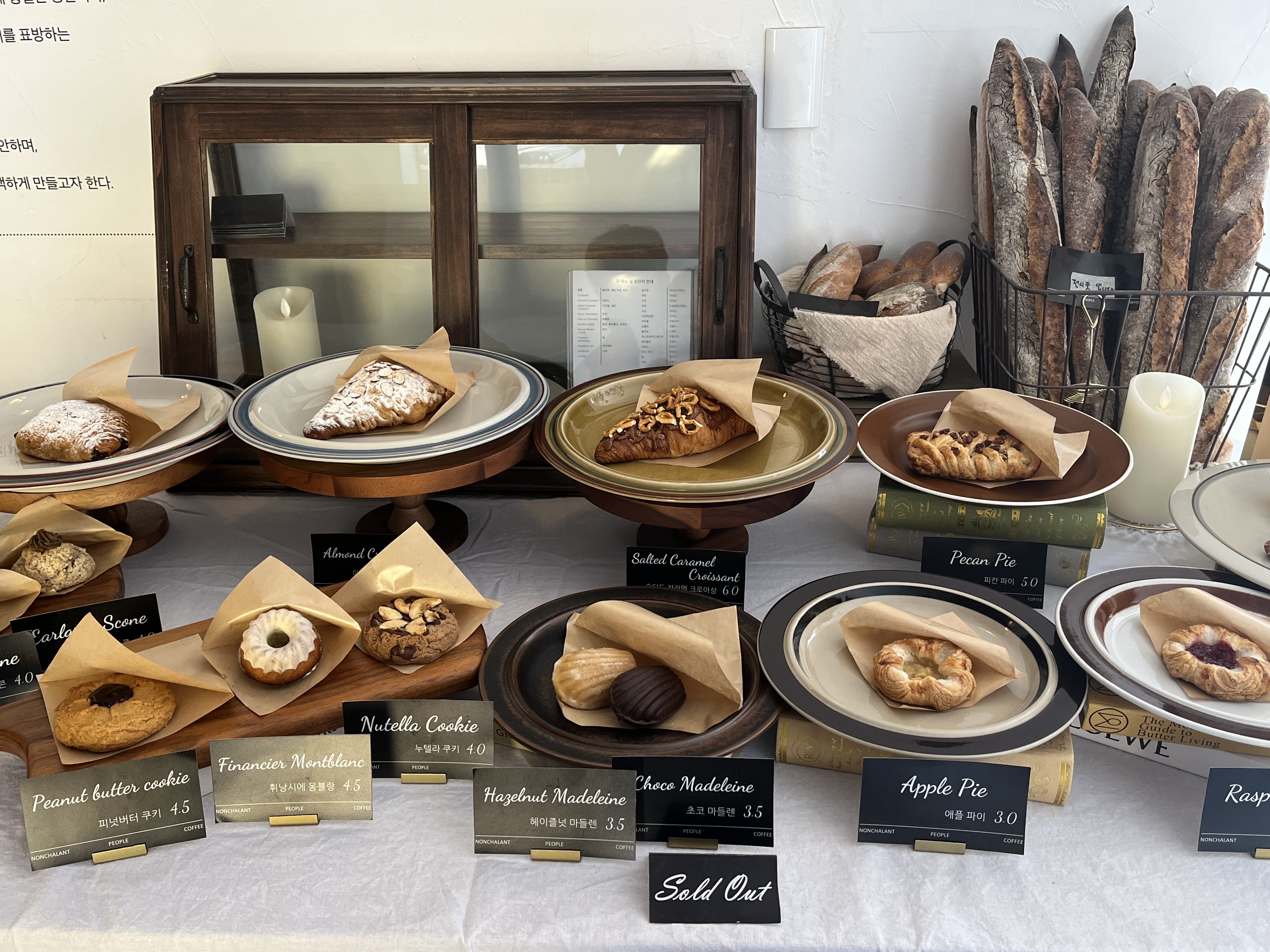 하얀 현관문을 지나면 이렇게 베이커리 메뉴들과 따스한 햇살 밑에서 취침하시는 하얀 고양이와 마주친다.