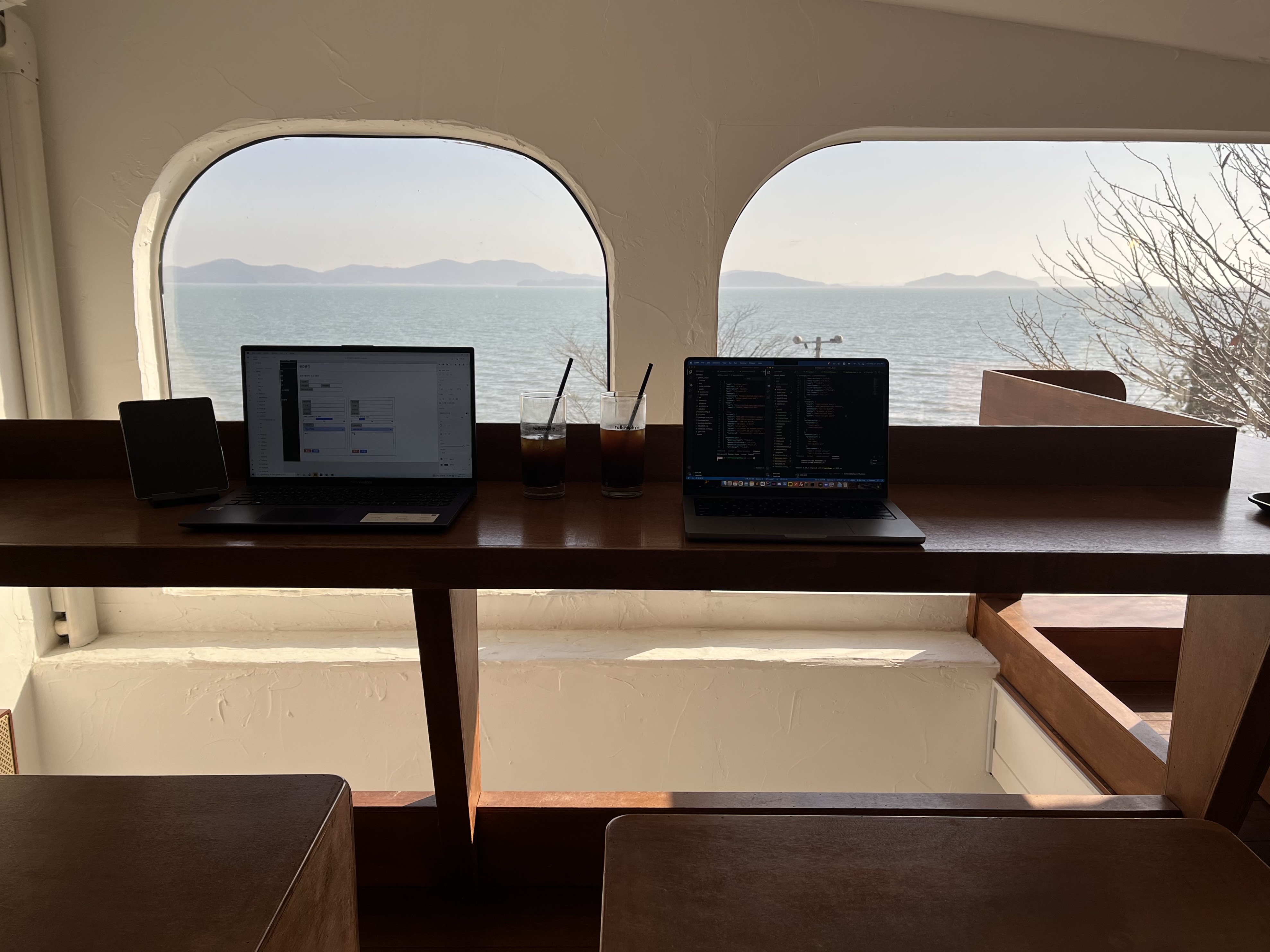 뚜벅이라 찬또이 만나기전에는 강화도까지 와볼 생각 못했는데, 예쁜 카페들도 많고 어쨌든 물이 맑지 않은 동해바다여도 햇살에 부서지는 반짝거림이 물멍하기 좋았다.