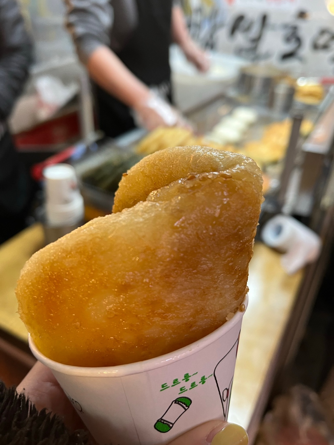 다음 타자는 호떡이랑 떠뽀끼!!! 원래 광장호떡이 정통인데 이 날 하필 늦게 도착한지라 일찍 영업종료해버리고 바로 옆에서 찹쌀호떡을 먹었는데 이것도 나쁘지 않았다.