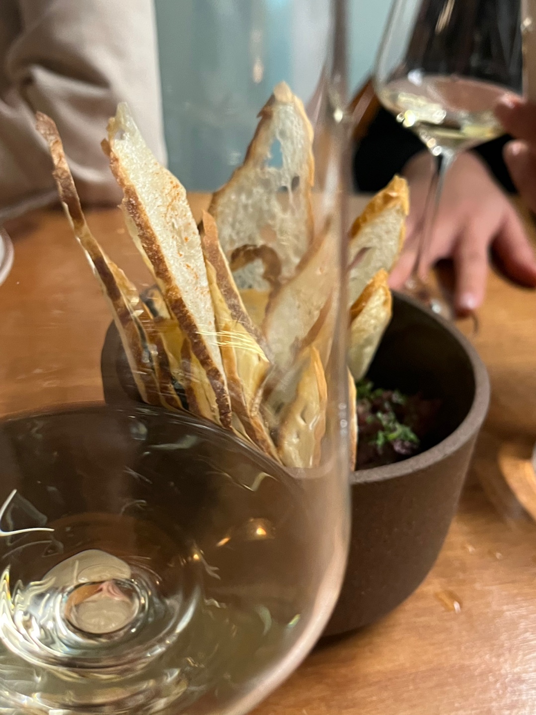일단 추천해주신 내추럴 와인으로 스타뚜. 두가지 와인이었는데, 첫 글라스잔에 침이 고이는 산미가 가득했던 맛있는 와인