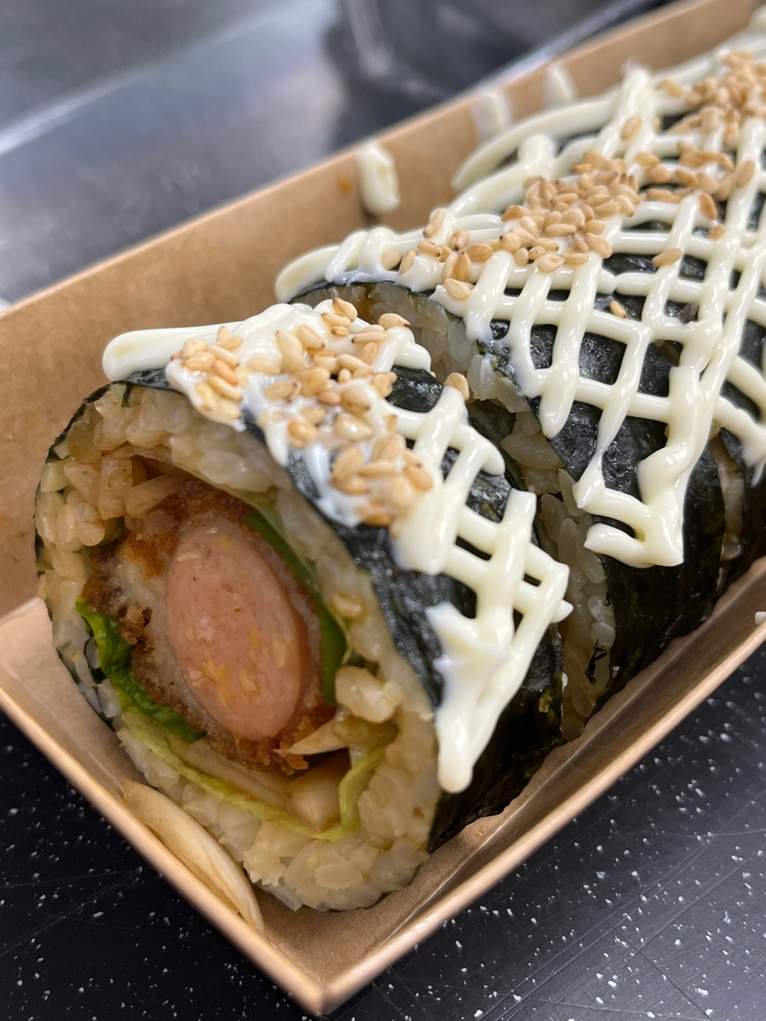 의외의 국수맛집겸 베이킹 클래스를 듣다가 우연히 알게된 핫도그 김밥이 어메이징했던 먹고가게. 동네가게라 가격도 싸고 주문 즉시 핫도그를 튀기기때문에 신선, 따끈한 김밥에 매콤한 마요네즈 소스까지 삼박자 궁합이 잘 맞는 별미같은 김밥이였다. 지하철역이나 접근이 살짝 어렵기 때문에 일부러 찾아간다면 미리 주문을 해두고 잠시 주차후 가져가는 것을 추천.