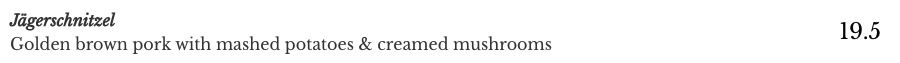 일단 주관적인 관점에서는 독일 음식을 접해본 적이 없다면 생소할수도 있다. 개인적으로는 독일식 소세지의 두툼한 고기맛과 신맛이 강한 사워크라우트를 좋아하는데다가 버섯이 올라간 돼지고기 커틀렛이요? 없어서 못먹죠. 할정도로 좋아하는 편인데다가 뉴질랜드에서부터 좋아했던 미트파이는 살짝 양고기 냄새가 나긴 했지만 거슬리는 정도는 아니였고, 패스트리 쉐프의 레스토랑이다보니 파이의 바삭함이나 빵의 담백함은 정말 마음에 들었다.