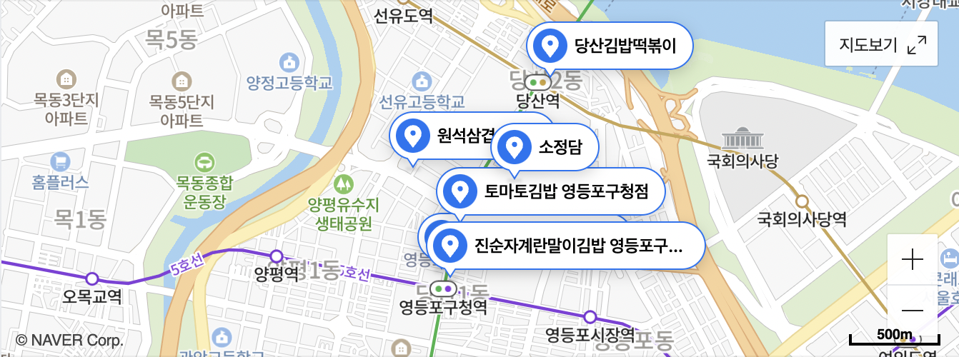 네이버 플레이스에서 검색해보면 영등포구청역의 김밥집들이 쭉 나오는데 이중 김밥 예쁘게드세요를 제외하고 내맘대로 탑티어 3 김밥집들을 소개해볼께요.