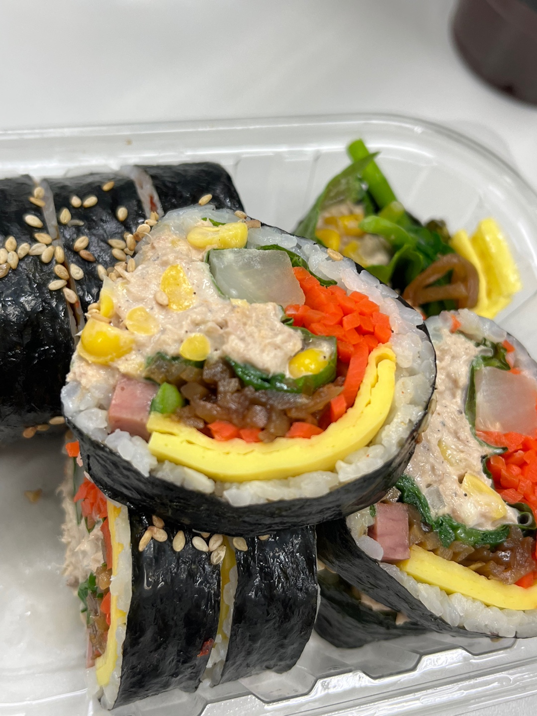 또 참치김밥에는 마요네즈와 옥수수가 함께 들어가있어 간편한 한끼로는 최고예요.
